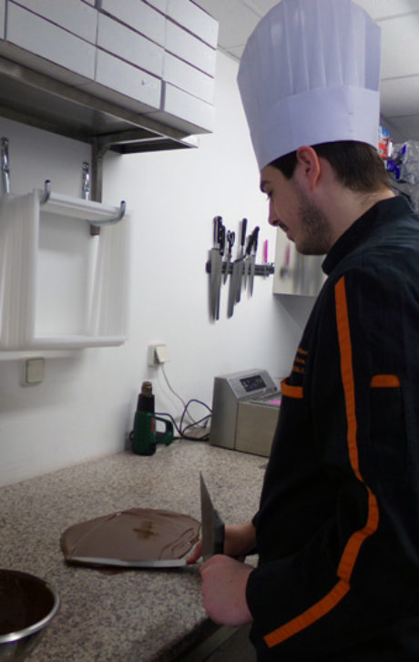 C’est juste derrière le magasin que le chef chocolatier Kévin Sammartano élabore ses produits.